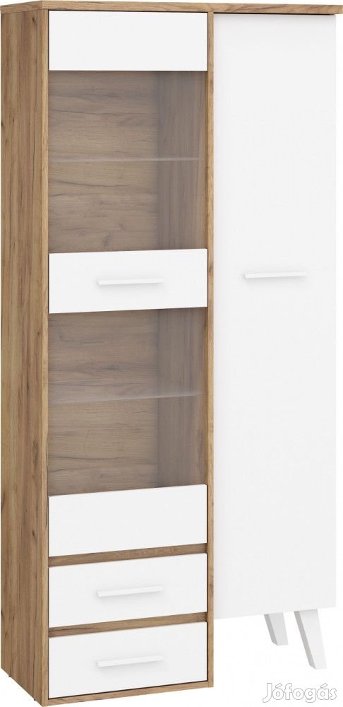 Vitrines szekrény 1 ajtóval és 1 üvegajtóval, üvegpolcokkal, 2 fiókkal, az ajtó mögött polcokkal, arany tölgy és fehér színben. További információkért kattintson ide: