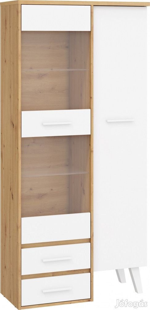 Vitrines szekrény 1 ajtóval és 1 üvegajtóval, üvegpolcokkal, 2 fiókkal, az ajtó mögött polcokkal, artisan tölgy és fehér színben. További információkért kattintson ide: