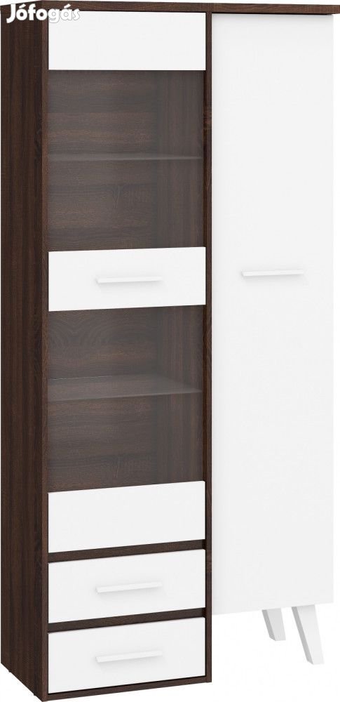 Vitrines szekrény 1 ajtóval és 1 üvegajtóval, üvegpolcokkal, 2 fiókkal, az ajtó mögött polcokkal, sötét sonoma tölgy és fehér színben. További információkért kattintson ide:
