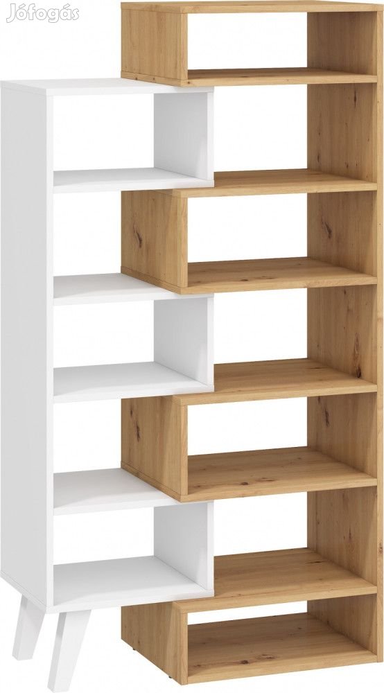 Könyvespolc eltolható nyitott polcokkal artisan tölgy és fehér színben. További információkért kattintson ide: