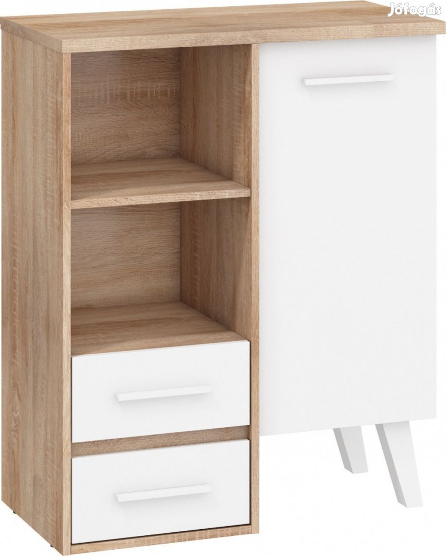 Könyvespolc 1 ajtóval, 2 fiókkal, az ajtó mögött polcokkal és nyitott polcokkal, világos sonoma tölgy és fehér színben. További információkért kattintson ide: