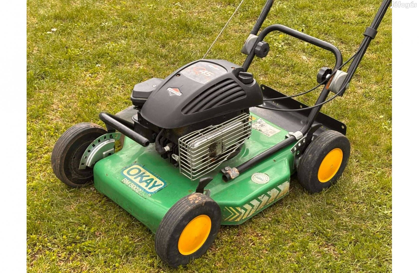 Eladó a képeken látható használt jó állapotú Okay Briggs Oldalkidobós Fűnyíró.