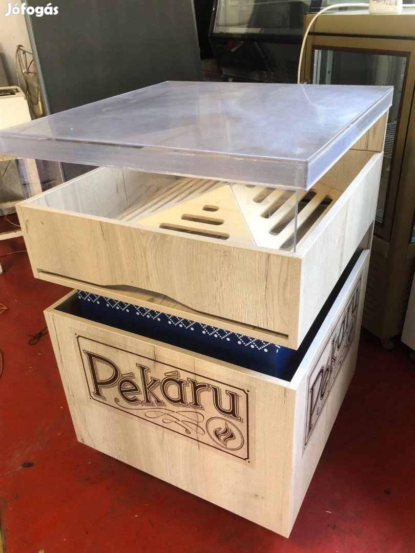Önkiszolgáló pékárus konténer / fornetti regál / péksüteményes szekrény, kihúzható morzsa tálcával, igényes, szép állapotban eladó. (kerekes, könnyen mozgatható) Szállításban esetleg tudok segíteni.