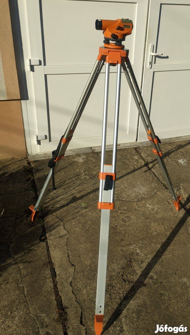 Eladó a képeken látható Setl-AL-24D (Geodesy) típ. optikai szintező tartozékaival: műszerállvánnyal, műanyag szintezőléccel.