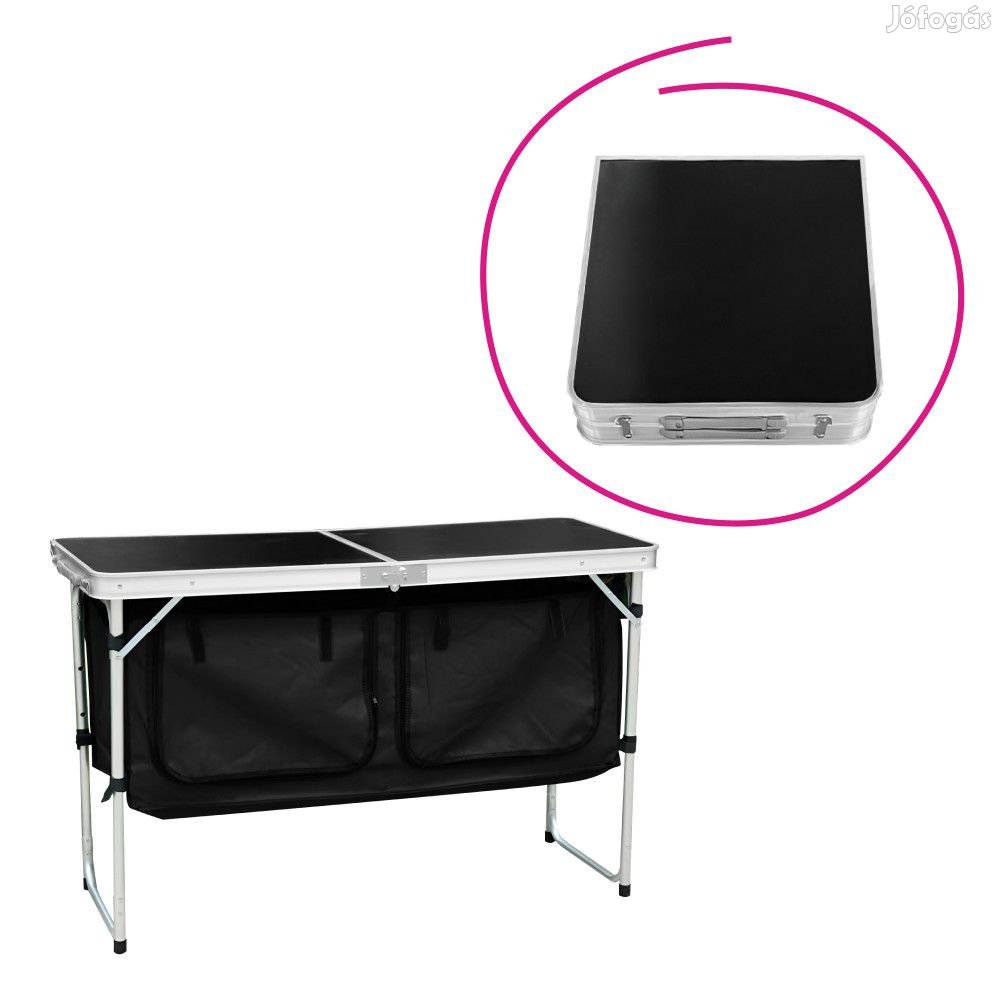 Anyag: alumínium/MDF/szövet Szín: szürke/fekete Kinyitott asztal méretei (SzxMéxMa): 120x47x54 cm Az asztal magassága állítható A magasság három szinten állítható Állítható magasság: 54/60/70 cm Összecsukható, praktikus tárolódoboz formába Összecsukott asztal méretei (SzxMéxMa): 60x47x10 cm Rendszerezővel szállítva Rendszerező méretei (SzxMéxMa): 105x40x40 cm 2 cipzáras rekesz Rekesz méretei (SzxMa): 46x33 cm Összecsukható rendszerező Könnyű és praktikus Összecsukható Hordozható Könnyen kezelhető és tárolható Ideális kempingezéshez és piknikezéshez Ellenáll az időjárás viszontagságainak 4 fő számára alkalmas Súly: 6,5 kg Teherbírás: 30 kg Összeszerelve szállítva További információkért kattintson ide: