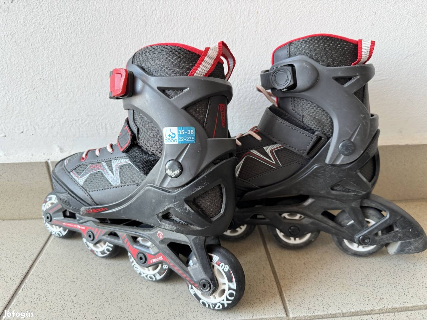 Eladó egy Dechatlon-ban vásárolt, Oxelo márkájú egysoros gyerek görkori. Állítható méretű: 35-38-as, keveset használt, újszerű állapotban, fekete/piros színű.