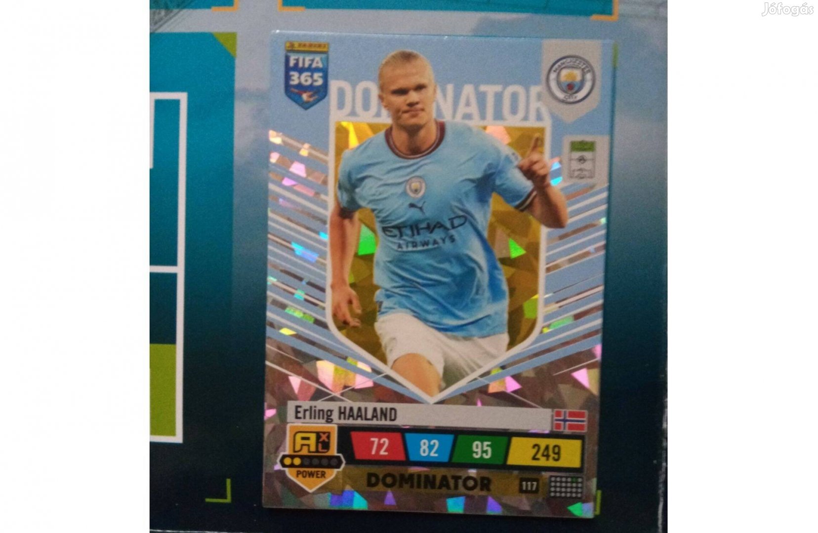 Eladó a képen látható Panini FIFA 365 2023 Adrenalyn XL Erling Haaland (Manchester City) 117-es számú kártya.