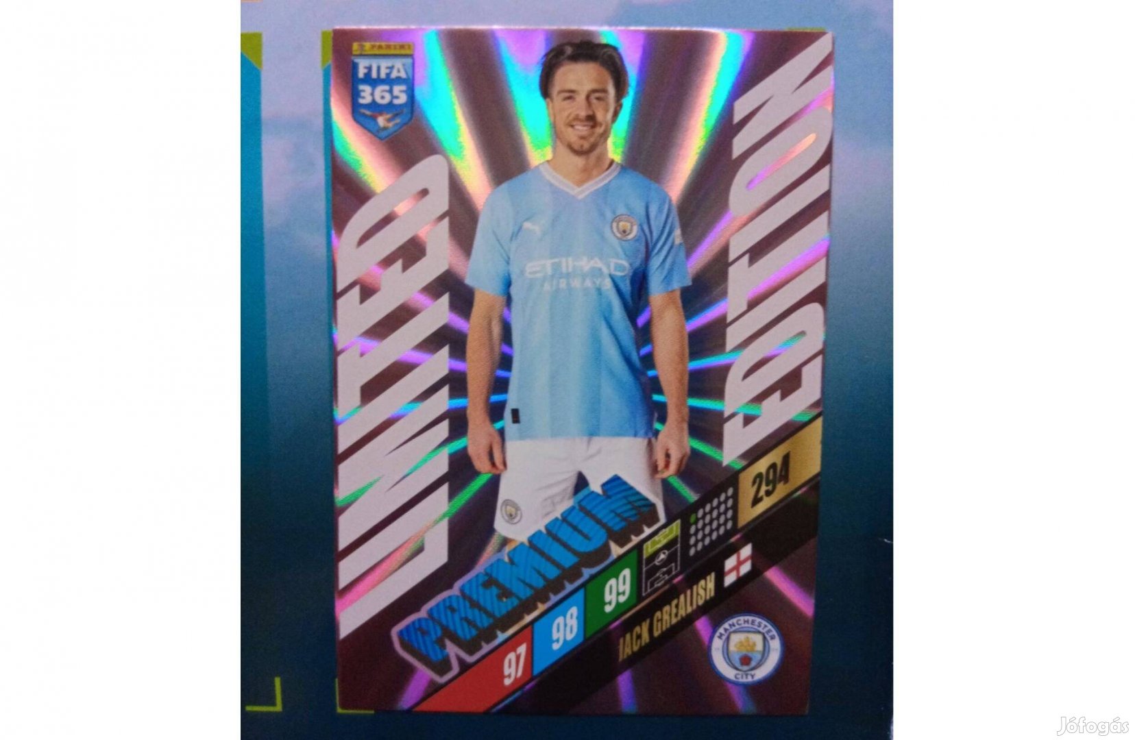Eladó a képen látható Panini FIFA 365 Adrenalyn 2024 Jack Grealish (Manchester City) Prémium Limited kártya.