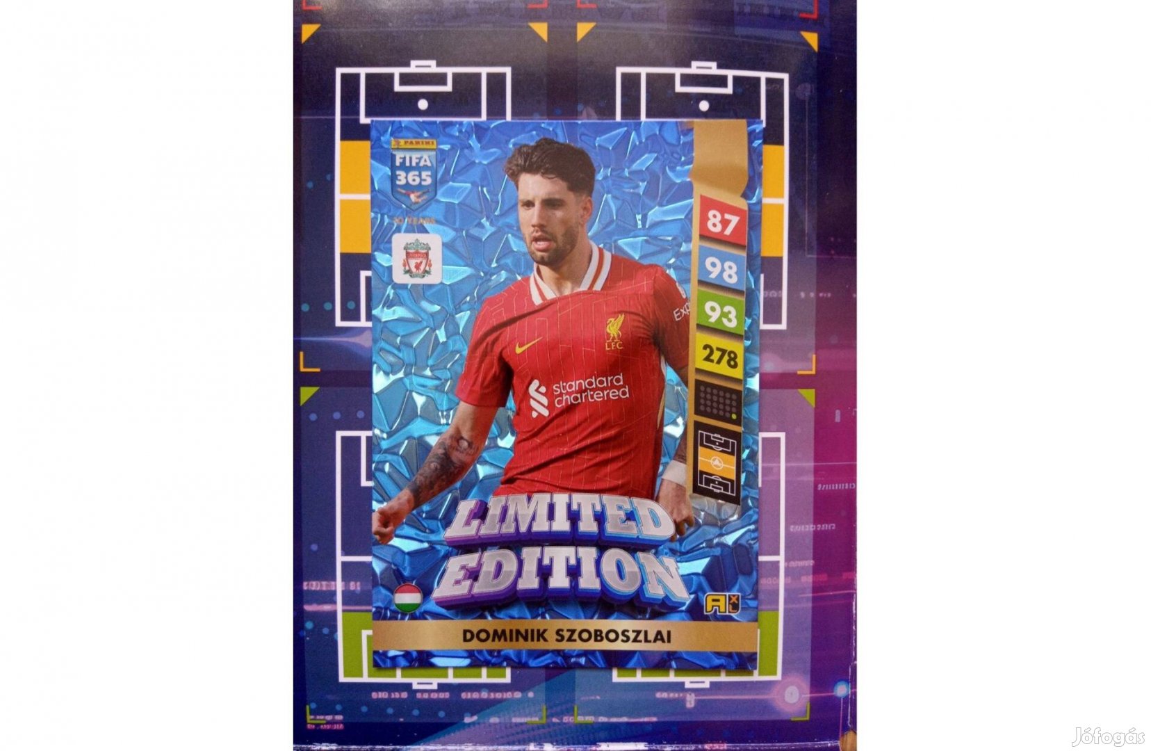 Eladó a képen látható Panini FIFA 365 Adrenalyn 2025 Szoboszlai Dominik (Liverpool) XXL Limited (nagyméretű) kártya.