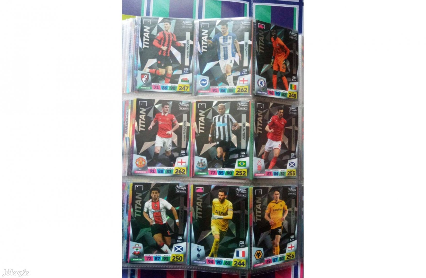 Eladó a képen látható Panini Premier League 2022-2023 Adrenalyn XL Titan teljes sor kártyái:
