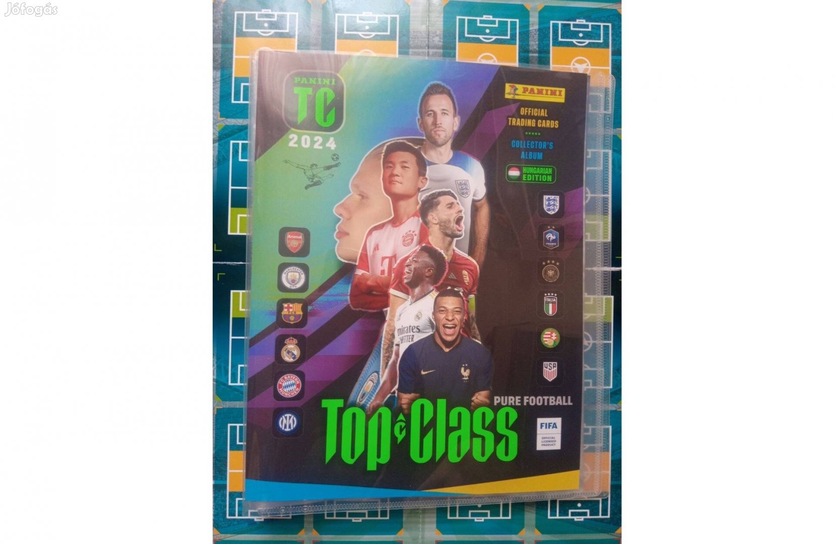 Eladó a képen látható Panini Top Class 2024 kártyagyűjtő album teljesen új, hibátlan, tökéletes állapotban, 270 különböző azaz összes kártyával, külföldi kiadás ahol Magyarország helyett Spanyolország csapata van benne, ellenőrzőlistával, hivatalos útmutatóval és ajándékba 3 db Holo Giants kártyával.