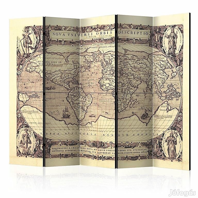 Az "Antik világtérkép" díszítő paraván egy kivételes része a modern beltereknek. A 5-részes, fából készült és kétoldalúan nyomtatott paraván nemcsak diszkréten elválasztja a teret, de hihetetlen megjelenést is biztosít a beltérnek. A tökéletes kivitelezés és a Full HD minőségű eredeti motívumok azt eredményezik, hogy a szobaparaván mindegyik beltér számára utánozhatatlan csábot biztosít. A beltéri díszparaván minden bizonnyal nagyszerű ötlet a helyiség díszítésére. Érdemes megemlíteni a praktikus alkalmazásukat is - a szobaparavánok használhatók pl. a kiteregetett ruhák eltakarására. Nagyon eredeti díszítőelem, mely mind lakásban, mind irodákban egyaránt használható, pl: fodrászszalonban, orvosi rendelőben vagy akár könyvelői irodában is.