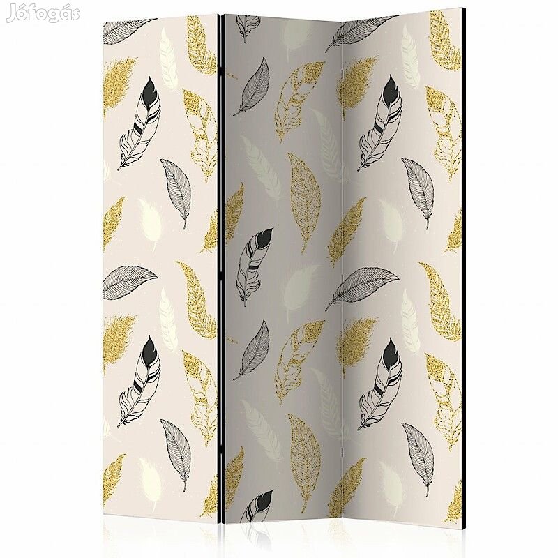Az "Arany és fekete tollak" díszítő paraván egy kivételes része a modern beltereknek. A 3-részes, fából készült és kétoldalúan nyomtatott paraván nemcsak diszkréten elválasztja a teret, de hihetetlen megjelenést is biztosít a beltérnek. A tökéletes kivitelezés és a Full HD minőségű eredeti motívumok azt eredményezik, hogy a szobaparaván mindegyik beltér számára utánozhatatlan csábot biztosít. A beltéri díszparaván minden bizonnyal nagyszerű ötlet a helyiség díszítésére. Érdemes megemlíteni a praktikus alkalmazásukat is - a szobaparavánok használhatók pl. a kiteregetett ruhák eltakarására. Nagyon eredeti díszítőelem, mely mind lakásban, mind irodákban egyaránt használható, pl: fodrászszalonban, orvosi rendelőben vagy akár könyvelői irodában is.