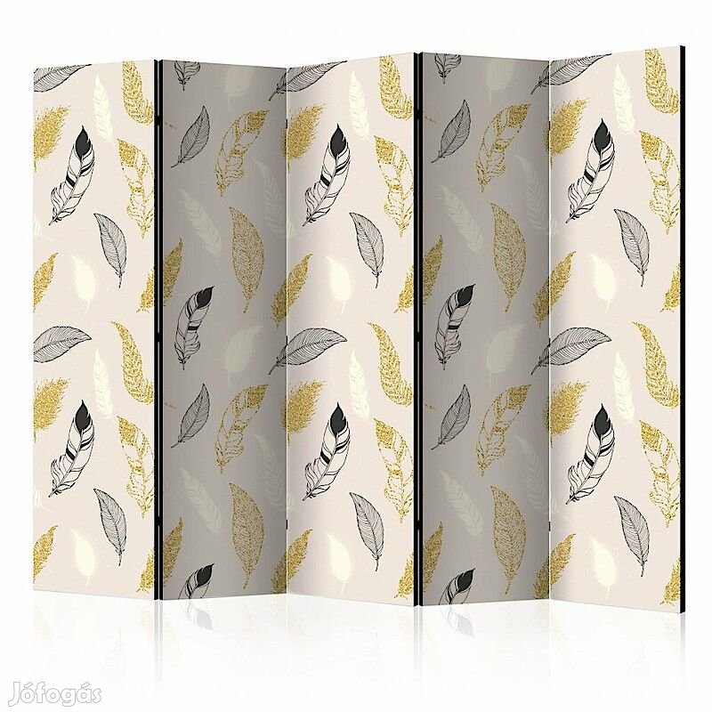 Az "Arany és fekete tollak II" díszítő paraván egy kivételes része a modern beltereknek. A 5-részes, fából készült és kétoldalúan nyomtatott paraván nemcsak diszkréten elválasztja a teret, de hihetetlen megjelenést is biztosít a beltérnek. A tökéletes kivitelezés és a Full HD minőségű eredeti motívumok azt eredményezik, hogy a szobaparaván mindegyik beltér számára utánozhatatlan csábot biztosít. A beltéri díszparaván minden bizonnyal nagyszerű ötlet a helyiség díszítésére. Érdemes megemlíteni a praktikus alkalmazásukat is - a szobaparavánok használhatók pl. a kiteregetett ruhák eltakarására. Nagyon eredeti díszítőelem, mely mind lakásban, mind irodákban egyaránt használható, pl: fodrászszalonban, orvosi rendelőben vagy akár könyvelői irodában is.