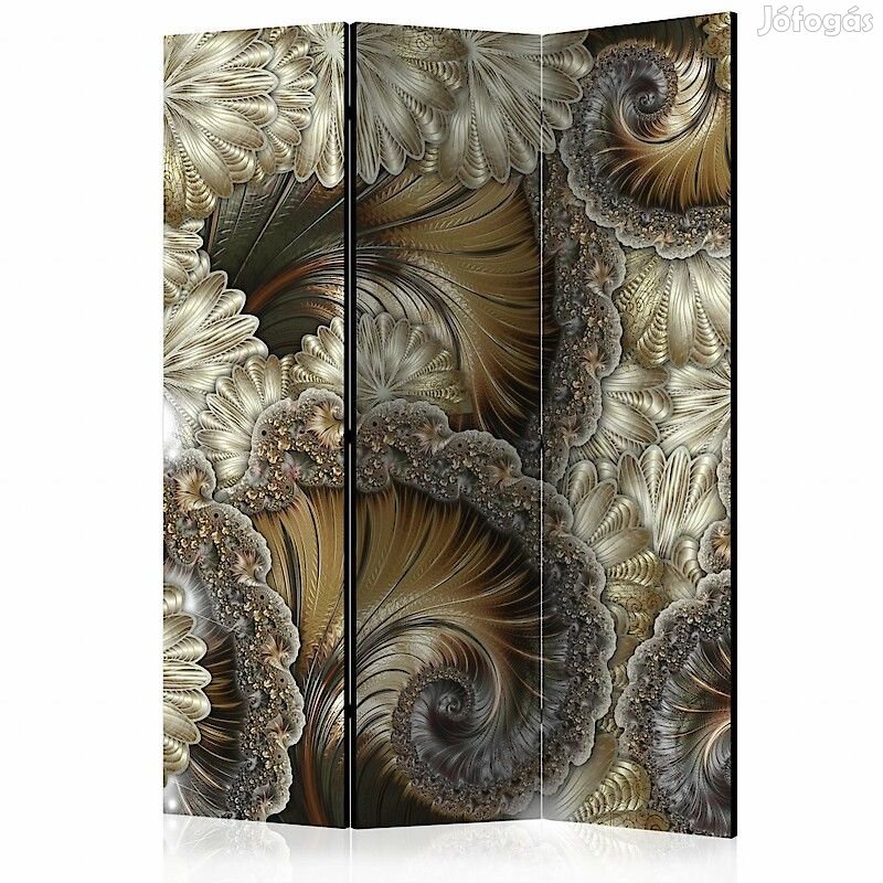 Az "Arany kézi legyezők" díszítő paraván egy kivételes része a modern beltereknek. A 3-részes, fából készült és kétoldalúan nyomtatott paraván nemcsak diszkréten elválasztja a teret, de hihetetlen megjelenést is biztosít a beltérnek. A tökéletes kivitelezés és a Full HD minőségű eredeti motívumok azt eredményezik, hogy a szobaparaván mindegyik beltér számára utánozhatatlan csábot biztosít. A beltéri díszparaván minden bizonnyal nagyszerű ötlet a helyiség díszítésére. Érdemes megemlíteni a praktikus alkalmazásukat is - a szobaparavánok használhatók pl. a kiteregetett ruhák eltakarására. Nagyon eredeti díszítőelem, mely mind lakásban, mind irodákban egyaránt használható, pl: fodrászszalonban, orvosi rendelőben vagy akár könyvelői irodában is.