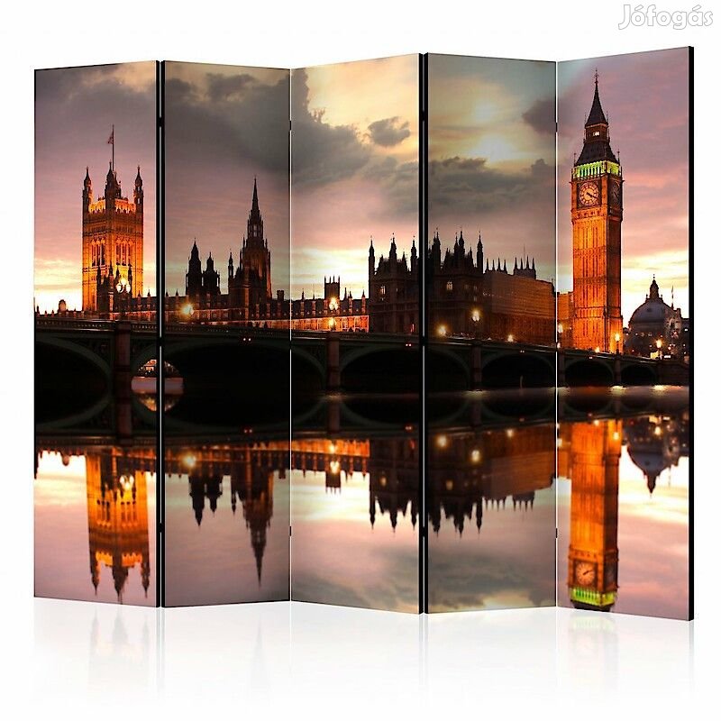 A "Big Ben este, Londonban II" díszítő paraván egy kivételes része a modern beltereknek. A 5-részes, fából készült és kétoldalúan nyomtatott paraván nemcsak diszkréten elválasztja a teret, de hihetetlen megjelenést is biztosít a beltérnek. A tökéletes kivitelezés és a Full HD minőségű eredeti motívumok azt eredményezik, hogy a szobaparaván mindegyik beltér számára utánozhatatlan csábot biztosít. A beltéri díszparaván minden bizonnyal nagyszerű ötlet a helyiség díszítésére. Érdemes megemlíteni a praktikus alkalmazásukat is - a szobaparavánok használhatók pl. a kiteregetett ruhák eltakarására. Nagyon eredeti díszítőelem, mely mind lakásban, mind irodákban egyaránt használható, pl: fodrászszalonban, orvosi rendelőben vagy akár könyvelői irodában is.