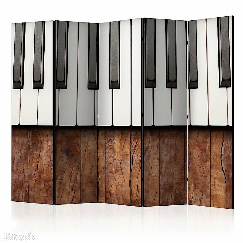 A "Billentyűk mahagóni fán II" díszítő paraván egy kivételes része a modern beltereknek. A 5-részes, fából készült és kétoldalúan nyomtatott paraván nemcsak diszkréten elválasztja a teret, de hihetetlen megjelenést is biztosít a beltérnek. A tökéletes kivitelezés és a Full HD minőségű eredeti motívumok azt eredményezik, hogy a szobaparaván mindegyik beltér számára utánozhatatlan csábot biztosít. A beltéri díszparaván minden bizonnyal nagyszerű ötlet a helyiség díszítésére. Érdemes megemlíteni a praktikus alkalmazásukat is - a szobaparavánok használhatók pl. a kiteregetett ruhák eltakarására. Nagyon eredeti díszítőelem, mely mind lakásban, mind irodákban egyaránt használható, pl: fodrászszalonban, orvosi rendelőben vagy akár könyvelői irodában is.