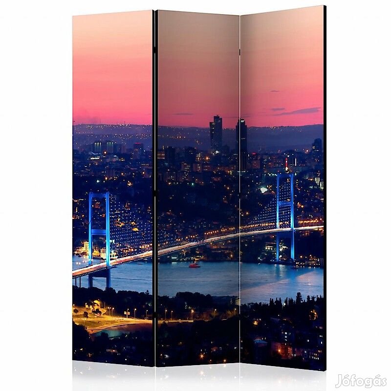 Az "Boszporusz-híd" díszítő paraván egy kivételes része a modern beltereknek. A 3-részes, fából készült és kétoldalúan nyomtatott paraván nemcsak diszkréten elválasztja a teret, de hihetetlen megjelenést is biztosít a beltérnek. A tökéletes kivitelezés és a Full HD minőségű eredeti motívumok azt eredményezik, hogy a szobaparaván mindegyik beltér számára utánozhatatlan csábot biztosít. A beltéri díszparaván minden bizonnyal nagyszerű ötlet a helyiség díszítésére. Érdemes megemlíteni a praktikus alkalmazásukat is - a szobaparavánok használhatók pl. a kiteregetett ruhák eltakarására. Nagyon eredeti díszítőelem, mely mind lakásban, mind irodákban egyaránt használható, pl: fodrászszalonban, orvosi rendelőben vagy akár könyvelői irodában is.