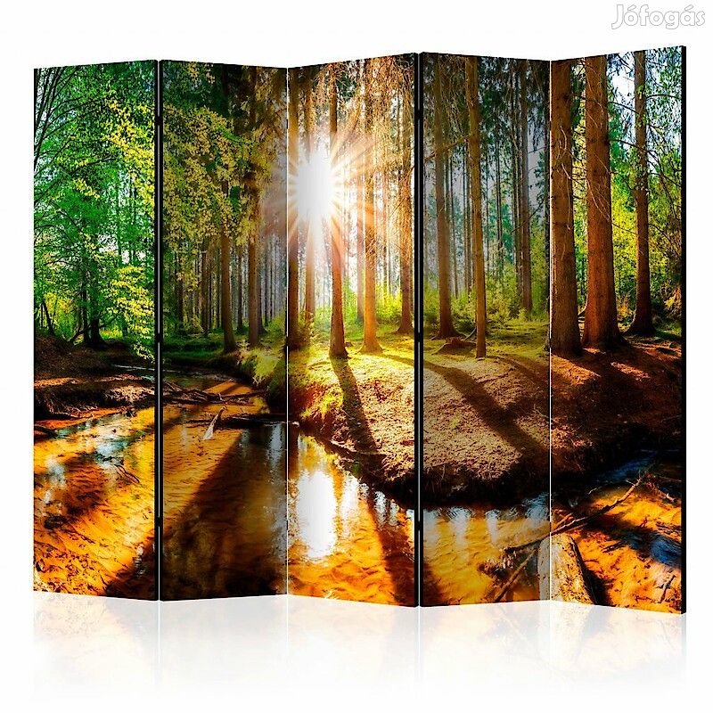 A "Csodálatos erdő II" díszítő paraván egy kivételes része a modern beltereknek. A 5-részes, fából készült és kétoldalúan nyomtatott paraván nemcsak diszkréten elválasztja a teret, de hihetetlen megjelenést is biztosít a beltérnek. A tökéletes kivitelezés és a Full HD minőségű eredeti motívumok azt eredményezik, hogy a szobaparaván mindegyik beltér számára utánozhatatlan csábot biztosít. A beltéri díszparaván minden bizonnyal nagyszerű ötlet a helyiség díszítésére. Érdemes megemlíteni a praktikus alkalmazásukat is - a szobaparavánok használhatók pl. a kiteregetett ruhák eltakarására. Nagyon eredeti díszítőelem, mely mind lakásban, mind irodákban egyaránt használható, pl: fodrászszalonban, orvosi rendelőben vagy akár könyvelői irodában is.