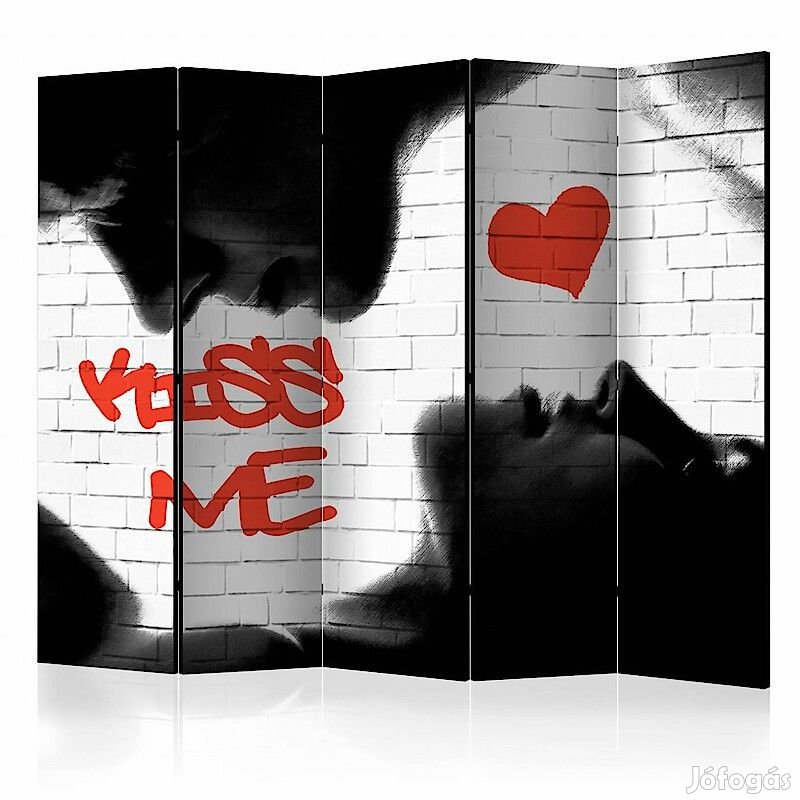 A "Csókolj meg II" díszítő paraván egy kivételes része a modern beltereknek. A 5-részes, fából készült és kétoldalúan nyomtatott paraván nemcsak diszkréten elválasztja a teret, de hihetetlen megjelenést is biztosít a beltérnek. A tökéletes kivitelezés és a Full HD minőségű eredeti motívumok azt eredményezik, hogy a szobaparaván mindegyik beltér számára utánozhatatlan csábot biztosít. A beltéri díszparaván minden bizonnyal nagyszerű ötlet a helyiség díszítésére. Érdemes megemlíteni a praktikus alkalmazásukat is - a szobaparavánok használhatók pl. a kiteregetett ruhák eltakarására. Nagyon eredeti díszítőelem, mely mind lakásban, mind irodákban egyaránt használható, pl: fodrászszalonban, orvosi rendelőben vagy akár könyvelői irodában is.
