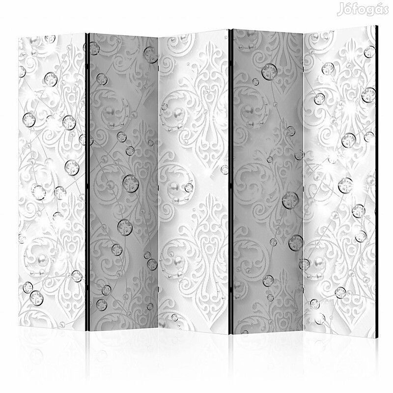 A "Díszek gyémántokkal II" díszítő paraván egy kivételes része a modern beltereknek. A 5-részes, fából készült és kétoldalúan nyomtatott paraván nemcsak diszkréten elválasztja a teret, de hihetetlen megjelenést is biztosít a beltérnek. A tökéletes kivitelezés és a Full HD minőségű eredeti motívumok azt eredményezik, hogy a szobaparaván mindegyik beltér számára utánozhatatlan csábot biztosít. A beltéri díszparaván minden bizonnyal nagyszerű ötlet a helyiség díszítésére. Érdemes megemlíteni a praktikus alkalmazásukat is - a szobaparavánok használhatók pl. a kiteregetett ruhák eltakarására. Nagyon eredeti díszítőelem, mely mind lakásban, mind irodákban egyaránt használható, pl: fodrászszalonban, orvosi rendelőben vagy akár könyvelői irodában is.