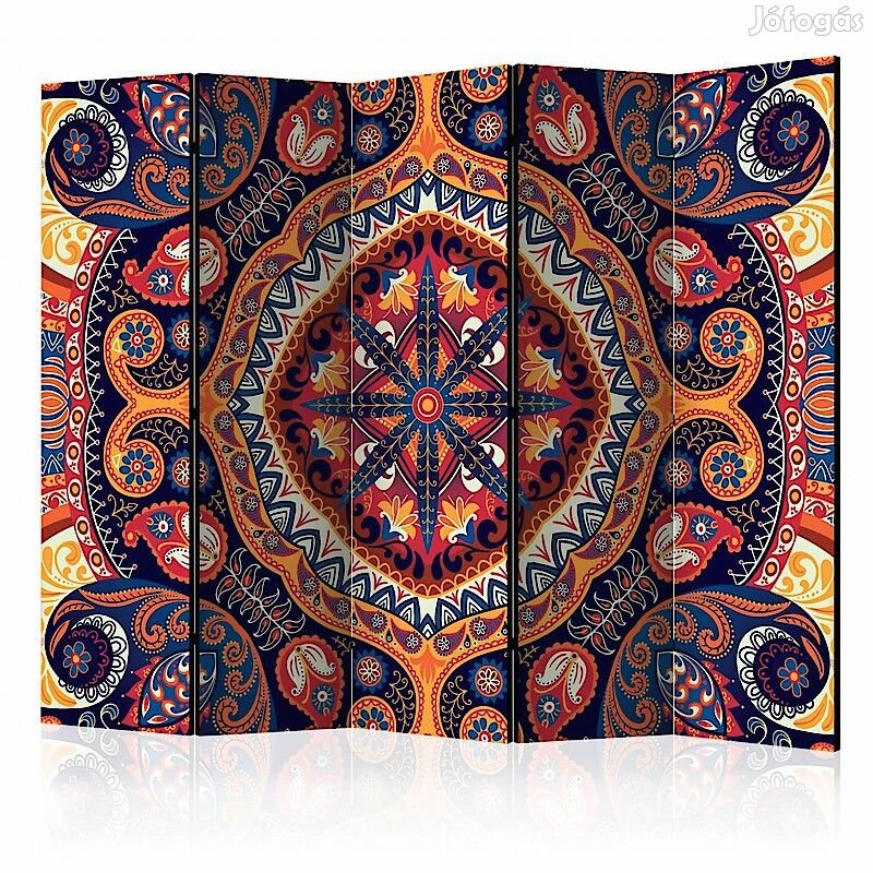 A "Díszes Mandala II" díszítő paraván egy kivételes része a modern beltereknek. A 5-részes, fából készült és kétoldalúan nyomtatott paraván nemcsak diszkréten elválasztja a teret, de hihetetlen megjelenést is biztosít a beltérnek. A tökéletes kivitelezés és a Full HD minőségű eredeti motívumok azt eredményezik, hogy a szobaparaván mindegyik beltér számára utánozhatatlan csábot biztosít. A beltéri díszparaván minden bizonnyal nagyszerű ötlet a helyiség díszítésére. Érdemes megemlíteni a praktikus alkalmazásukat is - a szobaparavánok használhatók pl. a kiteregetett ruhák eltakarására. Nagyon eredeti díszítőelem, mely mind lakásban, mind irodákban egyaránt használható, pl: fodrászszalonban, orvosi rendelőben vagy akár könyvelői irodában is.