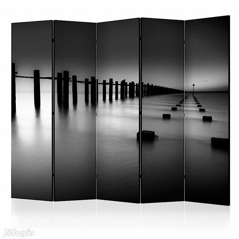 A "Fekete-fehér móló a vízen II" díszítő paraván egy kivételes része a modern beltereknek. A 5-részes, fából készült és kétoldalúan nyomtatott paraván nemcsak diszkréten elválasztja a teret, de hihetetlen megjelenést is biztosít a beltérnek. A tökéletes kivitelezés és a Full HD minőségű eredeti motívumok azt eredményezik, hogy a szobaparaván mindegyik beltér számára utánozhatatlan csábot biztosít. A beltéri díszparaván minden bizonnyal nagyszerű ötlet a helyiség díszítésére. Érdemes megemlíteni a praktikus alkalmazásukat is - a szobaparavánok használhatók pl. a kiteregetett ruhák eltakarására. Nagyon eredeti díszítőelem, mely mind lakásban, mind irodákban egyaránt használható, pl: fodrászszalonban, orvosi rendelőben vagy akár könyvelői irodában is.