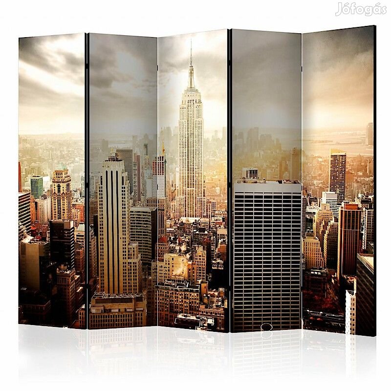 A "Felhős New York City II" díszítő paraván egy kivételes része a modern beltereknek. A 5-részes, fából készült és kétoldalúan nyomtatott paraván nemcsak diszkréten elválasztja a teret, de hihetetlen megjelenést is biztosít a beltérnek. A tökéletes kivitelezés és a Full HD minőségű eredeti motívumok azt eredményezik, hogy a szobaparaván mindegyik beltér számára utánozhatatlan csábot biztosít. A beltéri díszparaván minden bizonnyal nagyszerű ötlet a helyiség díszítésére. Érdemes megemlíteni a praktikus alkalmazásukat is - a szobaparavánok használhatók pl. a kiteregetett ruhák eltakarására. Nagyon eredeti díszítőelem, mely mind lakásban, mind irodákban egyaránt használható, pl: fodrászszalonban, orvosi rendelőben vagy akár könyvelői irodában is.
