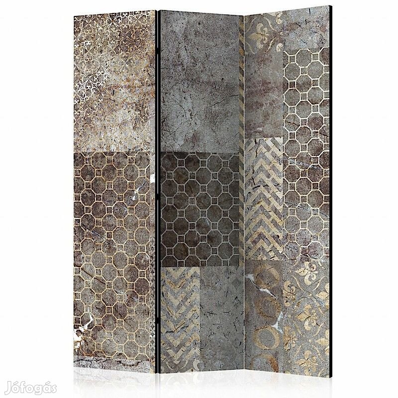 A "Geometriai textúrák" díszítő paraván egy kivételes része a modern beltereknek. A 3-részes, fából készült és kétoldalúan nyomtatott paraván nemcsak diszkréten elválasztja a teret, de hihetetlen megjelenést is biztosít a beltérnek. A tökéletes kivitelezés és a Full HD minőségű eredeti motívumok azt eredményezik, hogy a szobaparaván mindegyik beltér számára utánozhatatlan csábot biztosít. A beltéri díszparaván minden bizonnyal nagyszerű ötlet a helyiség díszítésére. Érdemes megemlíteni a praktikus alkalmazásukat is - a szobaparavánok használhatók pl. a kiteregetett ruhák eltakarására. Nagyon eredeti díszítőelem, mely mind lakásban, mind irodákban egyaránt használható, pl: fodrászszalonban, orvosi rendelőben vagy akár könyvelői irodában is.