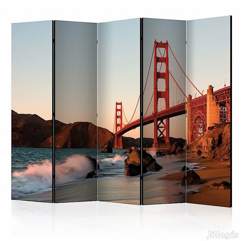 A "Golden Gate híd II" díszítő paraván egy kivételes része a modern beltereknek. A 5-részes, fából készült és kétoldalúan nyomtatott paraván nemcsak diszkréten elválasztja a teret, de hihetetlen megjelenést is biztosít a beltérnek. A tökéletes kivitelezés és a Full HD minőségű eredeti motívumok azt eredményezik, hogy a szobaparaván mindegyik beltér számára utánozhatatlan csábot biztosít. A beltéri díszparaván minden bizonnyal nagyszerű ötlet a helyiség díszítésére. Érdemes megemlíteni a praktikus alkalmazásukat is - a szobaparavánok használhatók pl. a kiteregetett ruhák eltakarására. Nagyon eredeti díszítőelem, mely mind lakásban, mind irodákban egyaránt használható, pl: fodrászszalonban, orvosi rendelőben vagy akár könyvelői irodában is.