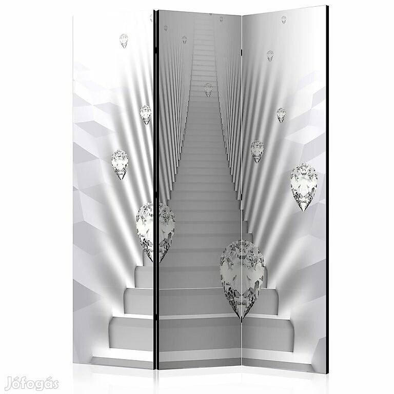 A "Gyémántlépcső" díszítő paraván egy kivételes része a modern beltereknek. A 3-részes, fából készült és kétoldalúan nyomtatott paraván nemcsak diszkréten elválasztja a teret, de hihetetlen megjelenést is biztosít a beltérnek. A tökéletes kivitelezés és a Full HD minőségű eredeti motívumok azt eredményezik, hogy a szobaparaván mindegyik beltér számára utánozhatatlan csábot biztosít. A beltéri díszparaván minden bizonnyal nagyszerű ötlet a helyiség díszítésére. Érdemes megemlíteni a praktikus alkalmazásukat is - a szobaparavánok használhatók pl. a kiteregetett ruhák eltakarására. Nagyon eredeti díszítőelem, mely mind lakásban, mind irodákban egyaránt használható, pl: fodrászszalonban, orvosi rendelőben vagy akár könyvelői irodában is.