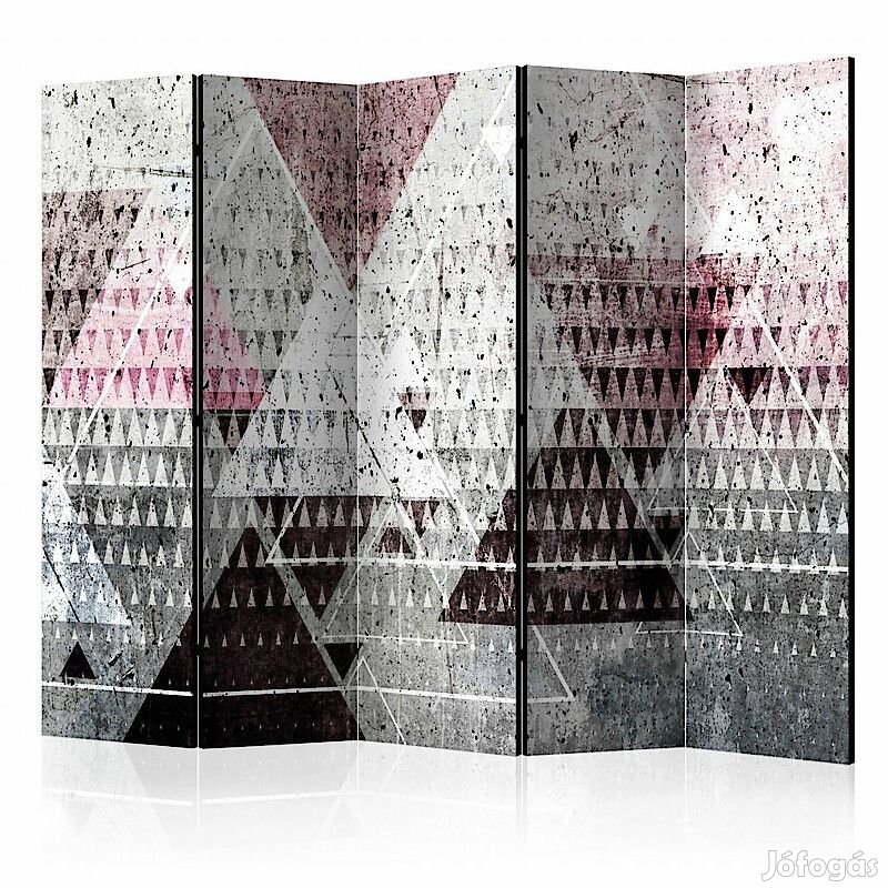 A "Háromszögek II" díszítő paraván egy kivételes része a modern beltereknek. A 5-részes, fából készült és kétoldalúan nyomtatott paraván nemcsak diszkréten elválasztja a teret, de hihetetlen megjelenést is biztosít a beltérnek. A tökéletes kivitelezés és a Full HD minőségű eredeti motívumok azt eredményezik, hogy a szobaparaván mindegyik beltér számára utánozhatatlan csábot biztosít. A beltéri díszparaván minden bizonnyal nagyszerű ötlet a helyiség díszítésére. Érdemes megemlíteni a praktikus alkalmazásukat is - a szobaparavánok használhatók pl. a kiteregetett ruhák eltakarására. Nagyon eredeti díszítőelem, mely mind lakásban, mind irodákban egyaránt használható, pl: fodrászszalonban, orvosi rendelőben vagy akár könyvelői irodában is.