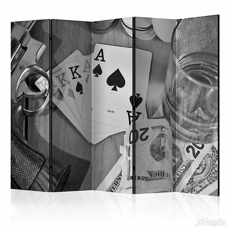 A "Hazárdjáték II" díszítő paraván egy kivételes része a modern beltereknek. A 5-részes, fából készült és kétoldalúan nyomtatott paraván nemcsak diszkréten elválasztja a teret, de hihetetlen megjelenést is biztosít a beltérnek. A tökéletes kivitelezés és a Full HD minőségű eredeti motívumok azt eredményezik, hogy a szobaparaván mindegyik beltér számára utánozhatatlan csábot biztosít. A beltéri díszparaván minden bizonnyal nagyszerű ötlet a helyiség díszítésére. Érdemes megemlíteni a praktikus alkalmazásukat is - a szobaparavánok használhatók pl. a kiteregetett ruhák eltakarására. Nagyon eredeti díszítőelem, mely mind lakásban, mind irodákban egyaránt használható, pl: fodrászszalonban, orvosi rendelőben vagy akár könyvelői irodában is.