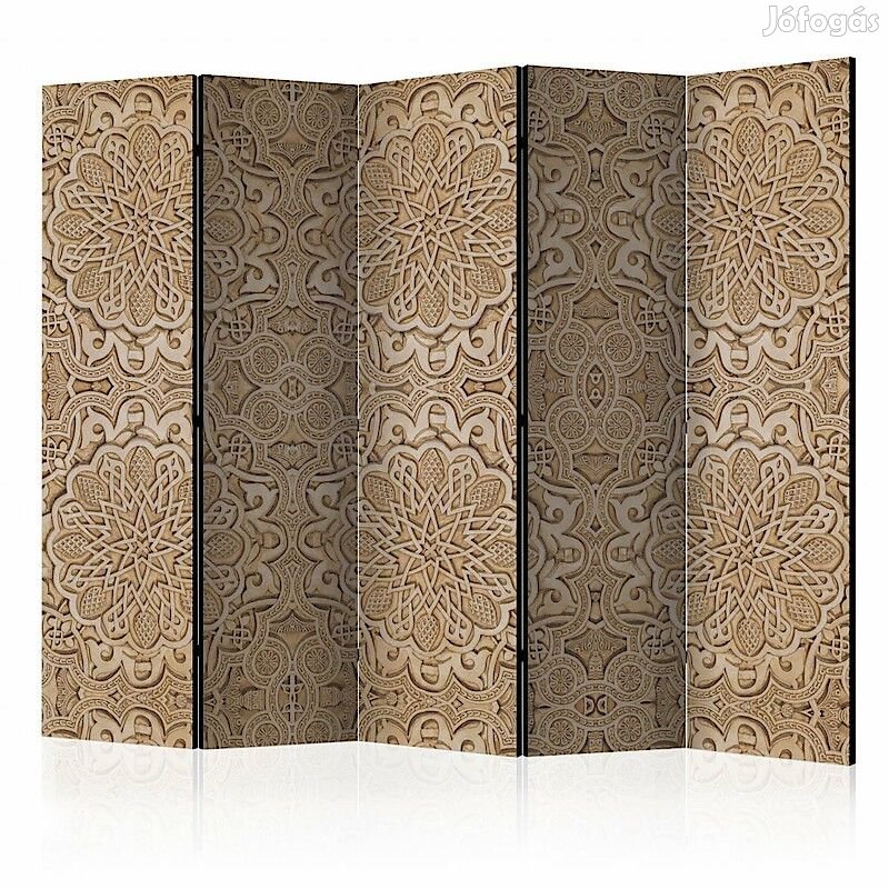 A "Homok dísz II" díszítő paraván egy kivételes része a modern beltereknek. A 5-részes, fából készült és kétoldalúan nyomtatott paraván nemcsak diszkréten elválasztja a teret, de hihetetlen megjelenést is biztosít a beltérnek. A tökéletes kivitelezés és a Full HD minőségű eredeti motívumok azt eredményezik, hogy a szobaparaván mindegyik beltér számára utánozhatatlan csábot biztosít. A beltéri díszparaván minden bizonnyal nagyszerű ötlet a helyiség díszítésére. Érdemes megemlíteni a praktikus alkalmazásukat is - a szobaparavánok használhatók pl. a kiteregetett ruhák eltakarására. Nagyon eredeti díszítőelem, mely mind lakásban, mind irodákban egyaránt használható, pl: fodrászszalonban, orvosi rendelőben vagy akár könyvelői irodában is.