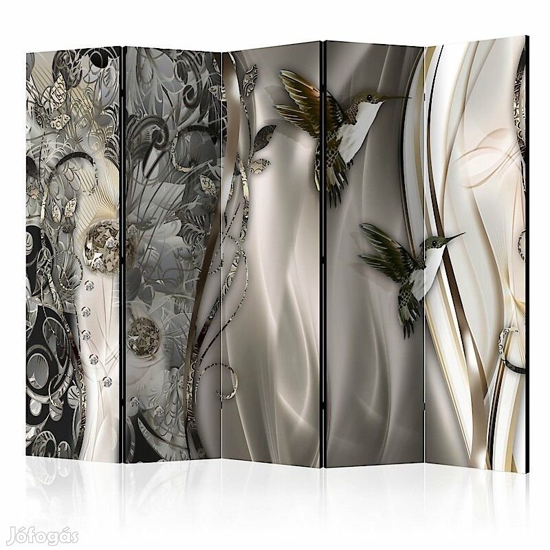 Az "Kristályok 1" díszítő paraván egy kivételes része a modern beltereknek. A 5-részes, fából készült és kétoldalúan nyomtatott paraván nemcsak diszkréten elválasztja a teret, de hihetetlen megjelenést is biztosít a beltérnek. A tökéletes kivitelezés és a Full HD minőségű eredeti motívumok azt eredményezik, hogy a szobaparaván mindegyik beltér számára utánozhatatlan csábot biztosít. A beltéri díszparaván minden bizonnyal nagyszerű ötlet a helyiség díszítésére. Érdemes megemlíteni a praktikus alkalmazásukat is - a szobaparavánok használhatók pl. a kiteregetett ruhák eltakarására. Nagyon eredeti díszítőelem, mely mind lakásban, mind irodákban egyaránt használható, pl: fodrászszalonban, orvosi rendelőben vagy akár könyvelői irodában is.