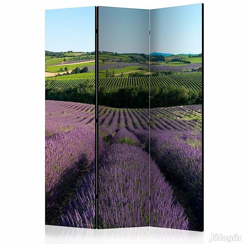 A "Levendula mezők" díszítő paraván egy kivételes része a modern beltereknek. A 3-részes, fából készült és kétoldalúan nyomtatott paraván nemcsak diszkréten elválasztja a teret, de hihetetlen megjelenést is biztosít a beltérnek. A tökéletes kivitelezés és a Full HD minőségű eredeti motívumok azt eredményezik, hogy a szobaparaván mindegyik beltér számára utánozhatatlan csábot biztosít. A beltéri díszparaván minden bizonnyal nagyszerű ötlet a helyiség díszítésére. Érdemes megemlíteni a praktikus alkalmazásukat is - a szobaparavánok használhatók pl. a kiteregetett ruhák eltakarására. Nagyon eredeti díszítőelem, mely mind lakásban, mind irodákban egyaránt használható, pl: fodrászszalonban, orvosi rendelőben vagy akár könyvelői irodában is.