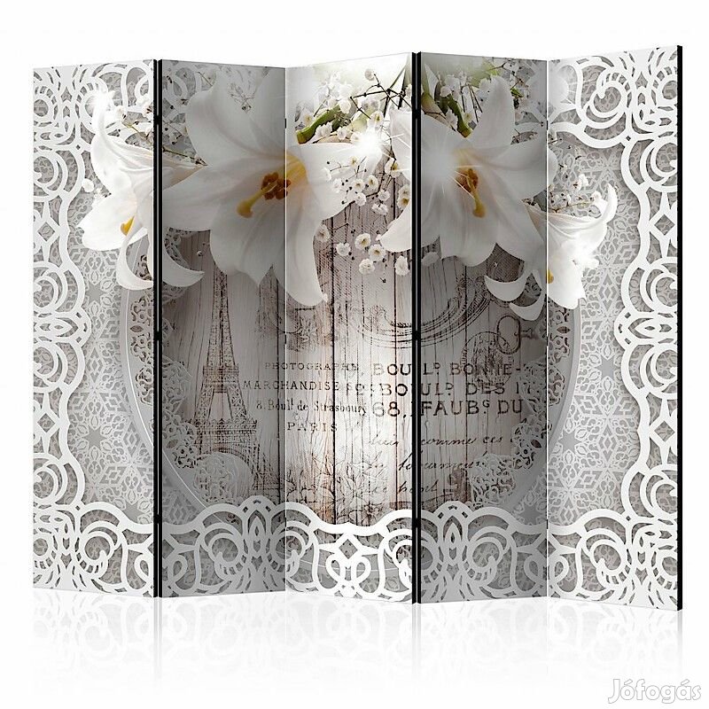 A "Liliom díszes párizsi minta II" díszítő paraván egy kivételes része a modern beltereknek. A 5-részes, fából készült és kétoldalúan nyomtatott paraván nemcsak diszkréten elválasztja a teret, de hihetetlen megjelenést is biztosít a beltérnek. A tökéletes kivitelezés és a Full HD minőségű eredeti motívumok azt eredményezik, hogy a szobaparaván mindegyik beltér számára utánozhatatlan csábot biztosít. A beltéri díszparaván minden bizonnyal nagyszerű ötlet a helyiség díszítésére. Érdemes megemlíteni a praktikus alkalmazásukat is - a szobaparavánok használhatók pl. a kiteregetett ruhák eltakarására. Nagyon eredeti díszítőelem, mely mind lakásban, mind irodákban egyaránt használható, pl: fodrászszalonban, orvosi rendelőben vagy akár könyvelői irodában is.