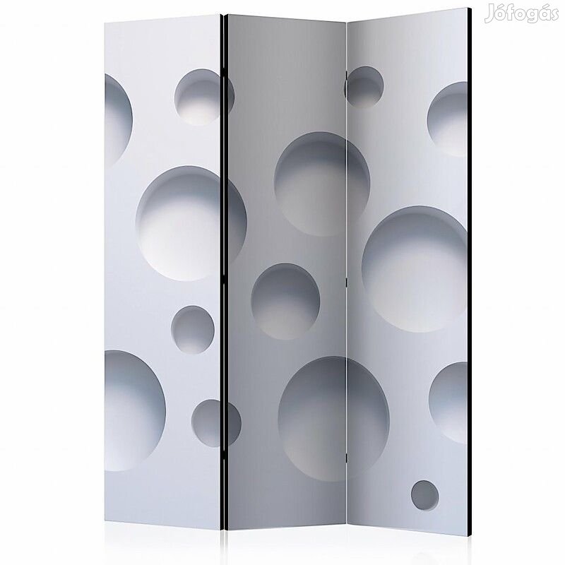 A "Lyukak harmóniája" díszítő paraván egy kivételes része a modern beltereknek. A 3-részes, fából készült és kétoldalúan nyomtatott paraván nemcsak diszkréten elválasztja a teret, de hihetetlen megjelenést is biztosít a beltérnek. A tökéletes kivitelezés és a Full HD minőségű eredeti motívumok azt eredményezik, hogy a szobaparaván mindegyik beltér számára utánozhatatlan csábot biztosít. A beltéri díszparaván minden bizonnyal nagyszerű ötlet a helyiség díszítésére. Érdemes megemlíteni a praktikus alkalmazásukat is - a szobaparavánok használhatók pl. a kiteregetett ruhák eltakarására. Nagyon eredeti díszítőelem, mely mind lakásban, mind irodákban egyaránt használható, pl: fodrászszalonban, orvosi rendelőben vagy akár könyvelői irodában is.