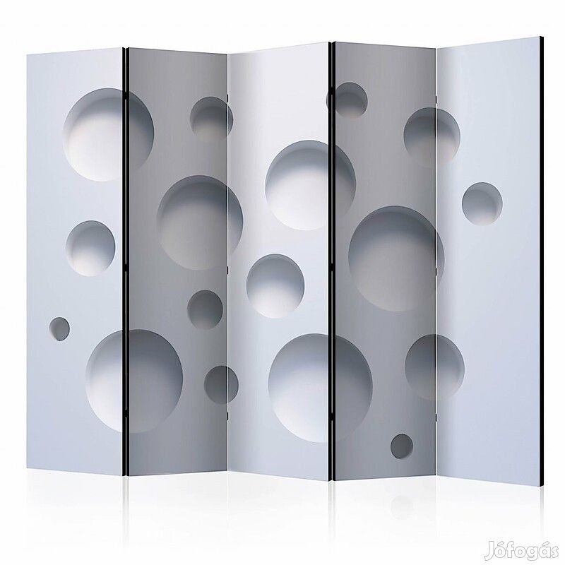 A "Lyukak harmóniája II" díszítő paraván egy kivételes része a modern beltereknek. A 5-részes, fából készült és kétoldalúan nyomtatott paraván nemcsak diszkréten elválasztja a teret, de hihetetlen megjelenést is biztosít a beltérnek. A tökéletes kivitelezés és a Full HD minőségű eredeti motívumok azt eredményezik, hogy a szobaparaván mindegyik beltér számára utánozhatatlan csábot biztosít. A beltéri díszparaván minden bizonnyal nagyszerű ötlet a helyiség díszítésére. Érdemes megemlíteni a praktikus alkalmazásukat is - a szobaparavánok használhatók pl. a kiteregetett ruhák eltakarására. Nagyon eredeti díszítőelem, mely mind lakásban, mind irodákban egyaránt használható, pl: fodrászszalonban, orvosi rendelőben vagy akár könyvelői irodában is.