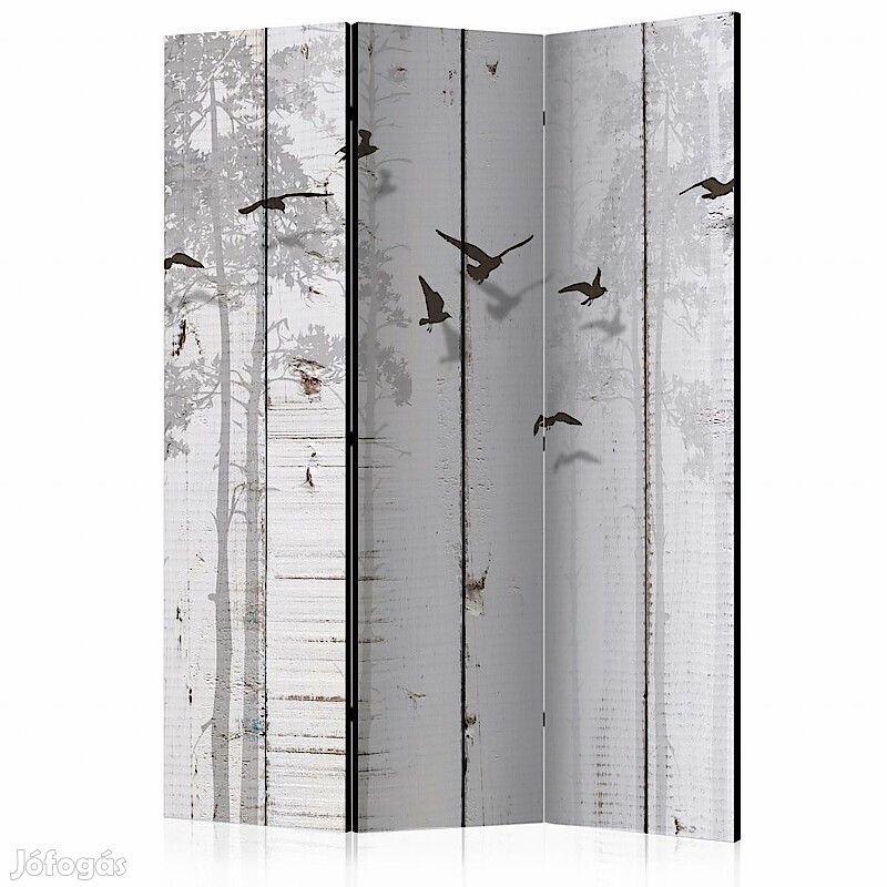 A "Madarak a deszkákon" díszítő paraván egy kivételes része a modern beltereknek. A 3-részes, fából készült és kétoldalúan nyomtatott paraván nemcsak diszkréten elválasztja a teret, de hihetetlen megjelenést is biztosít a beltérnek. A tökéletes kivitelezés és a Full HD minőségű eredeti motívumok azt eredményezik, hogy a szobaparaván mindegyik beltér számára utánozhatatlan csábot biztosít. A beltéri díszparaván minden bizonnyal nagyszerű ötlet a helyiség díszítésére. Érdemes megemlíteni a praktikus alkalmazásukat is - a szobaparavánok használhatók pl. a kiteregetett ruhák eltakarására. Nagyon eredeti díszítőelem, mely mind lakásban, mind irodákban egyaránt használható, pl: fodrászszalonban, orvosi rendelőben vagy akár könyvelői irodában is.