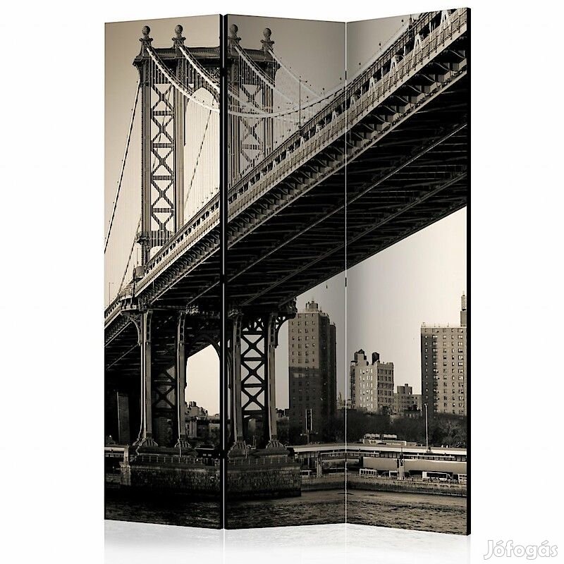 A "Manhattan híd, New York" díszítő paraván egy kivételes része a modern beltereknek. A 3-részes, fából készült és kétoldalúan nyomtatott paraván nemcsak diszkréten elválasztja a teret, de hihetetlen megjelenést is biztosít a beltérnek. A tökéletes kivitelezés és a Full HD minőségű eredeti motívumok azt eredményezik, hogy a szobaparaván mindegyik beltér számára utánozhatatlan csábot biztosít. A beltéri díszparaván minden bizonnyal nagyszerű ötlet a helyiség díszítésére. Érdemes megemlíteni a praktikus alkalmazásukat is - a szobaparavánok használhatók pl. a kiteregetett ruhák eltakarására. Nagyon eredeti díszítőelem, mely mind lakásban, mind irodákban egyaránt használható, pl: fodrászszalonban, orvosi rendelőben vagy akár könyvelői irodában is.