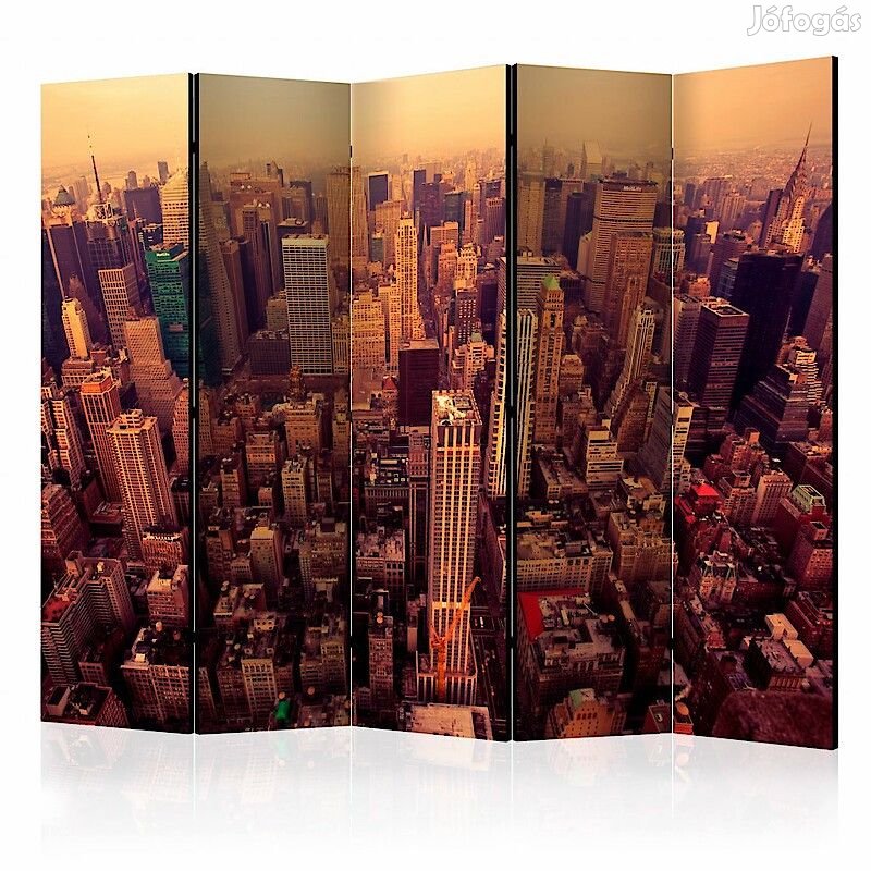 A "Manhattan madártávlatból II" díszítő paraván egy kivételes része a modern beltereknek. A 5-részes, fából készült és kétoldalúan nyomtatott paraván nemcsak diszkréten elválasztja a teret, de hihetetlen megjelenést is biztosít a beltérnek. A tökéletes kivitelezés és a Full HD minőségű eredeti motívumok azt eredményezik, hogy a szobaparaván mindegyik beltér számára utánozhatatlan csábot biztosít. A beltéri díszparaván minden bizonnyal nagyszerű ötlet a helyiség díszítésére. Érdemes megemlíteni a praktikus alkalmazásukat is - a szobaparavánok használhatók pl. a kiteregetett ruhák eltakarására. Nagyon eredeti díszítőelem, mely mind lakásban, mind irodákban egyaránt használható, pl: fodrászszalonban, orvosi rendelőben vagy akár könyvelői irodában is.