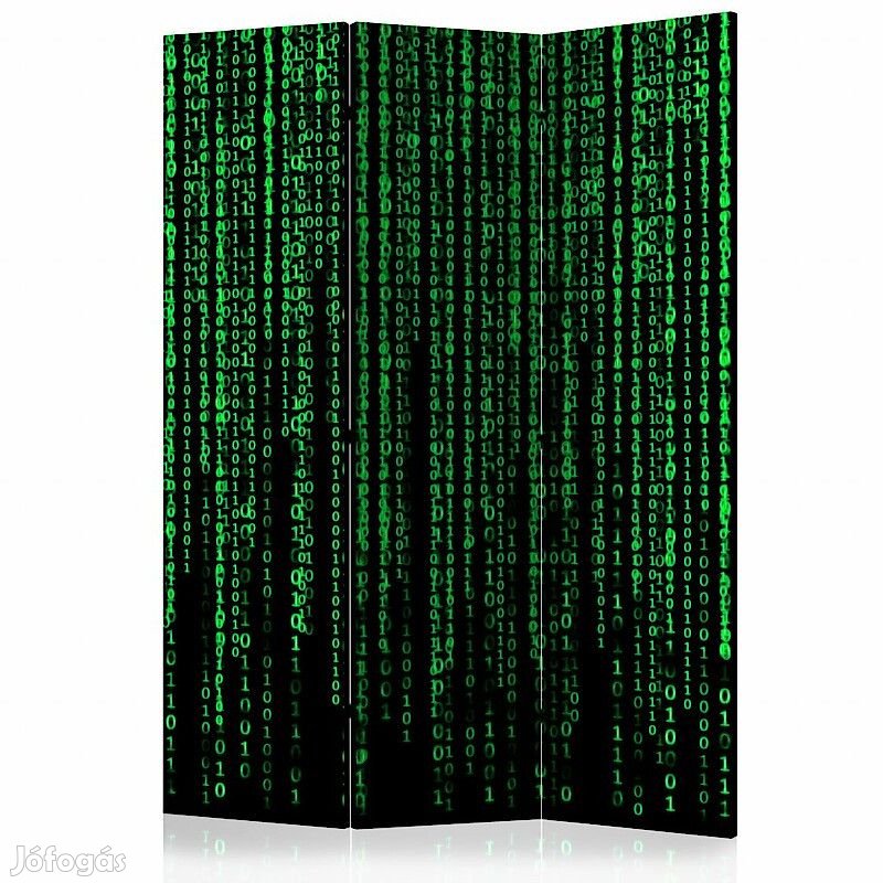 A "Mátrix kódja" díszítő paraván egy kivételes része a modern beltereknek. A 3-részes, fából készült és kétoldalúan nyomtatott paraván nemcsak diszkréten elválasztja a teret, de hihetetlen megjelenést is biztosít a beltérnek. A tökéletes kivitelezés és a Full HD minőségű eredeti motívumok azt eredményezik, hogy a szobaparaván mindegyik beltér számára utánozhatatlan csábot biztosít. A beltéri díszparaván minden bizonnyal nagyszerű ötlet a helyiség díszítésére. Érdemes megemlíteni a praktikus alkalmazásukat is - a szobaparavánok használhatók pl. a kiteregetett ruhák eltakarására. Nagyon eredeti díszítőelem, mely mind lakásban, mind irodákban egyaránt használható, pl: fodrászszalonban, orvosi rendelőben vagy akár könyvelői irodában is.
