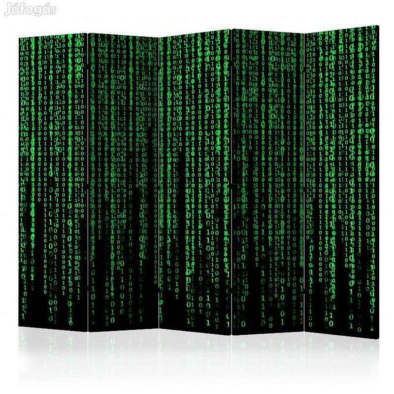 A "Mátrix kódja II" díszítő paraván egy kivételes része a modern beltereknek. A 5-részes, fából készült és kétoldalúan nyomtatott paraván nemcsak diszkréten elválasztja a teret, de hihetetlen megjelenést is biztosít a beltérnek. A tökéletes kivitelezés és a Full HD minőségű eredeti motívumok azt eredményezik, hogy a szobaparaván mindegyik beltér számára utánozhatatlan csábot biztosít. A beltéri díszparaván minden bizonnyal nagyszerű ötlet a helyiség díszítésére. Érdemes megemlíteni a praktikus alkalmazásukat is - a szobaparavánok használhatók pl. a kiteregetett ruhák eltakarására. Nagyon eredeti díszítőelem, mely mind lakásban, mind irodákban egyaránt használható, pl: fodrászszalonban, orvosi rendelőben vagy akár könyvelői irodában is.