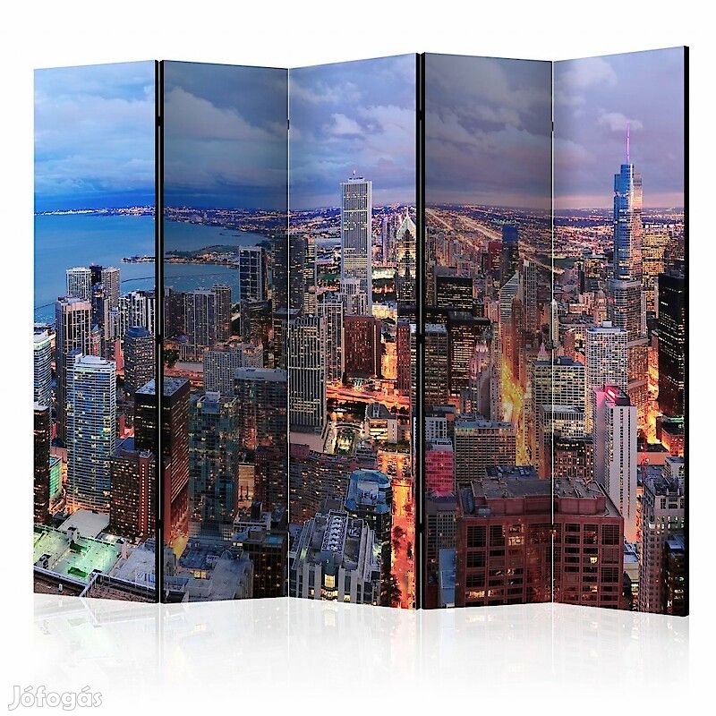 A "Megvilágított Chicago II" díszítő paraván egy kivételes része a modern beltereknek. A 5-részes, fából készült és kétoldalúan nyomtatott paraván nemcsak diszkréten elválasztja a teret, de hihetetlen megjelenést is biztosít a beltérnek. A tökéletes kivitelezés és a Full HD minőségű eredeti motívumok azt eredményezik, hogy a szobaparaván mindegyik beltér számára utánozhatatlan csábot biztosít. A beltéri díszparaván minden bizonnyal nagyszerű ötlet a helyiség díszítésére. Érdemes megemlíteni a praktikus alkalmazásukat is - a szobaparavánok használhatók pl. a kiteregetett ruhák eltakarására. Nagyon eredeti díszítőelem, mely mind lakásban, mind irodákban egyaránt használható, pl: fodrászszalonban, orvosi rendelőben vagy akár könyvelői irodában is.