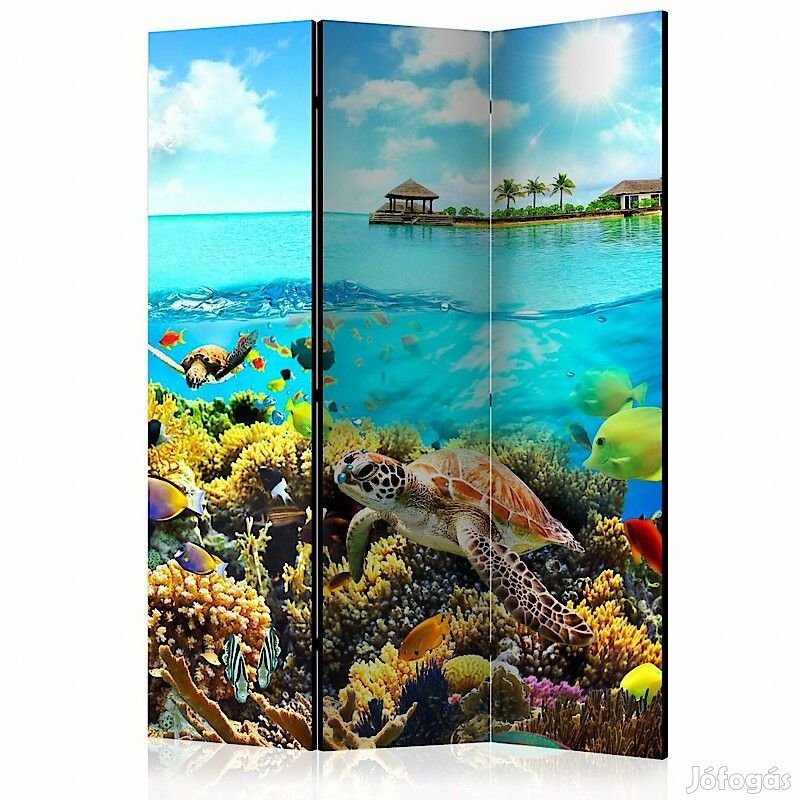 A "Mennyei Maldív-szigetek" díszítő paraván egy kivételes része a modern beltereknek. A 3-részes, fából készült és kétoldalúan nyomtatott paraván nemcsak diszkréten elválasztja a teret, de hihetetlen megjelenést is biztosít a beltérnek. A tökéletes kivitelezés és a Full HD minőségű eredeti motívumok azt eredményezik, hogy a szobaparaván mindegyik beltér számára utánozhatatlan csábot biztosít. A beltéri díszparaván minden bizonnyal nagyszerű ötlet a helyiség díszítésére. Érdemes megemlíteni a praktikus alkalmazásukat is - a szobaparavánok használhatók pl. a kiteregetett ruhák eltakarására. Nagyon eredeti díszítőelem, mely mind lakásban, mind irodákban egyaránt használható, pl: fodrászszalonban, orvosi rendelőben vagy akár könyvelői irodában is.