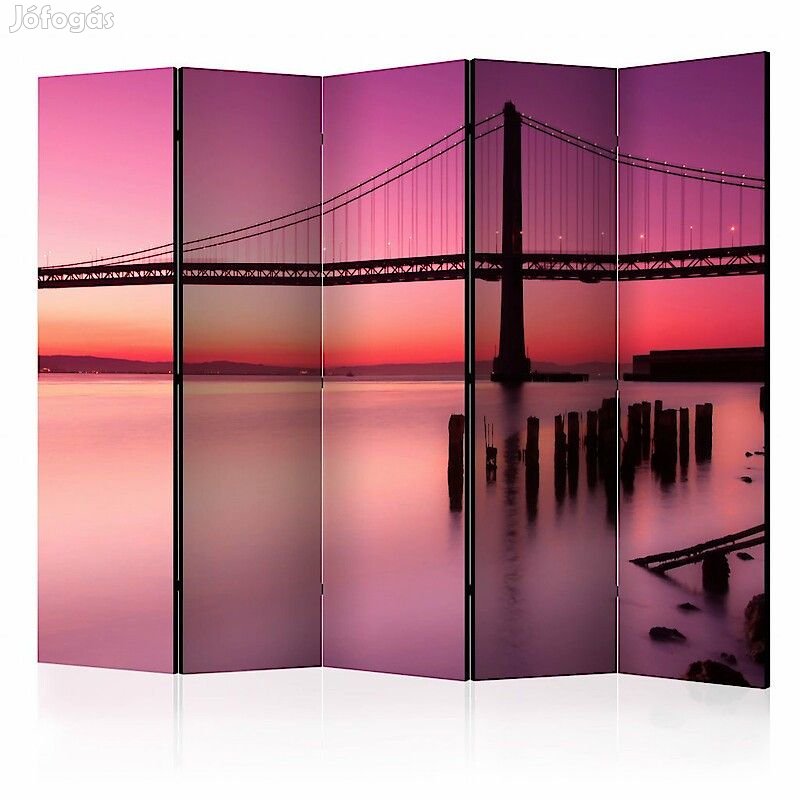 A "Naplemente a hídnál II" díszítő paraván egy kivételes része a modern beltereknek. A 5-részes, fából készült és kétoldalúan nyomtatott paraván nemcsak diszkréten elválasztja a teret, de hihetetlen megjelenést is biztosít a beltérnek. A tökéletes kivitelezés és a Full HD minőségű eredeti motívumok azt eredményezik, hogy a szobaparaván mindegyik beltér számára utánozhatatlan csábot biztosít. A beltéri díszparaván minden bizonnyal nagyszerű ötlet a helyiség díszítésére. Érdemes megemlíteni a praktikus alkalmazásukat is - a szobaparavánok használhatók pl. a kiteregetett ruhák eltakarására. Nagyon eredeti díszítőelem, mely mind lakásban, mind irodákban egyaránt használható, pl: fodrászszalonban, orvosi rendelőben vagy akár könyvelői irodában is.