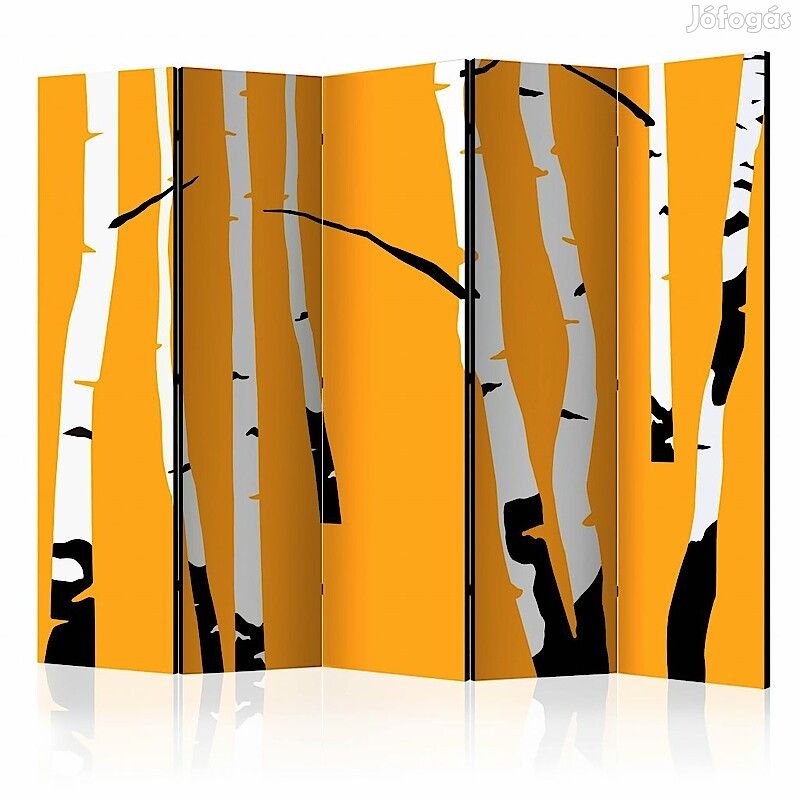A "Nyírfák narancssárga háttéren II" díszítő paraván egy kivételes része a modern beltereknek. A 5-részes, fából készült és kétoldalúan nyomtatott paraván nemcsak diszkréten elválasztja a teret, de hihetetlen megjelenést is biztosít a beltérnek. A tökéletes kivitelezés és a Full HD minőségű eredeti motívumok azt eredményezik, hogy a szobaparaván mindegyik beltér számára utánozhatatlan csábot biztosít. A beltéri díszparaván minden bizonnyal nagyszerű ötlet a helyiség díszítésére. Érdemes megemlíteni a praktikus alkalmazásukat is - a szobaparavánok használhatók pl. a kiteregetett ruhák eltakarására. Nagyon eredeti díszítőelem, mely mind lakásban, mind irodákban egyaránt használható, pl: fodrászszalonban, orvosi rendelőben vagy akár könyvelői irodában is.