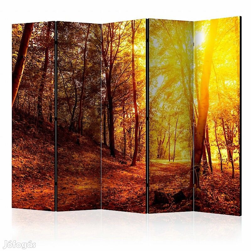 Az "Őszi séta az erdőben II" díszítő paraván egy kivételes része a modern beltereknek. A 5-részes, fából készült és kétoldalúan nyomtatott paraván nemcsak diszkréten elválasztja a teret, de hihetetlen megjelenést is biztosít a beltérnek. A tökéletes kivitelezés és a Full HD minőségű eredeti motívumok azt eredményezik, hogy a szobaparaván mindegyik beltér számára utánozhatatlan csábot biztosít. A beltéri díszparaván minden bizonnyal nagyszerű ötlet a helyiség díszítésére. Érdemes megemlíteni a praktikus alkalmazásukat is - a szobaparavánok használhatók pl. a kiteregetett ruhák eltakarására. Nagyon eredeti díszítőelem, mely mind lakásban, mind irodákban egyaránt használható, pl: fodrászszalonban, orvosi rendelőben vagy akár könyvelői irodában is.