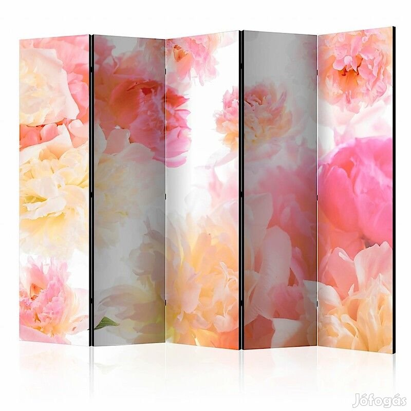 A "Pasztell pünkösdi rózsák II" díszítő paraván egy kivételes része a modern beltereknek. A 5-részes, fából készült és kétoldalúan nyomtatott paraván nemcsak diszkréten elválasztja a teret, de hihetetlen megjelenést is biztosít a beltérnek. A tökéletes kivitelezés és a Full HD minőségű eredeti motívumok azt eredményezik, hogy a szobaparaván mindegyik beltér számára utánozhatatlan csábot biztosít. A beltéri díszparaván minden bizonnyal nagyszerű ötlet a helyiség díszítésére. Érdemes megemlíteni a praktikus alkalmazásukat is - a szobaparavánok használhatók pl. a kiteregetett ruhák eltakarására. Nagyon eredeti díszítőelem, mely mind lakásban, mind irodákban egyaránt használható, pl: fodrászszalonban, orvosi rendelőben vagy akár könyvelői irodában is.